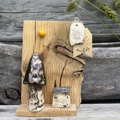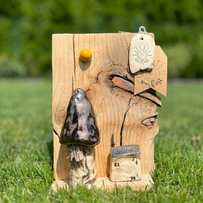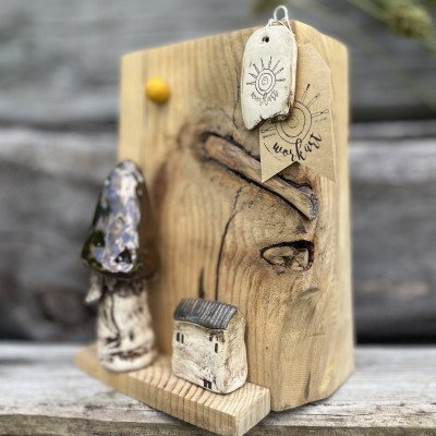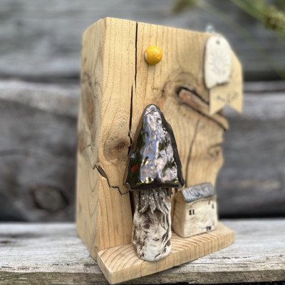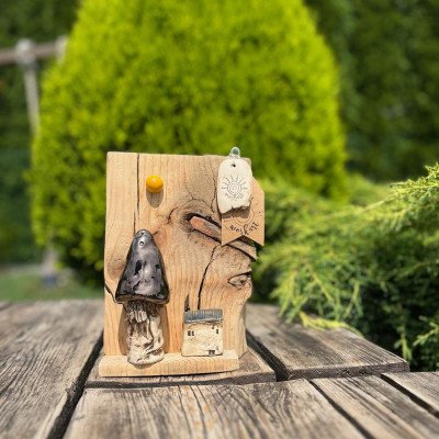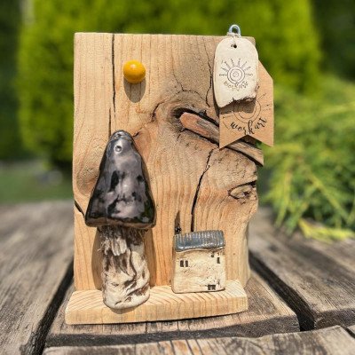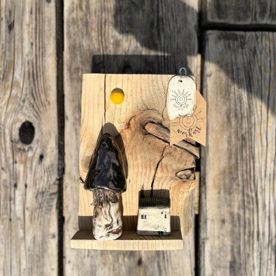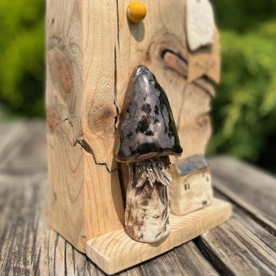 Ręcznie lepiony i ozdabiany pojemnik z motywem koralowca. Część środka została poszkliwiona zielonym morskim szkliwem z czarnym efektem, reszta pozostała w surowym stanie.