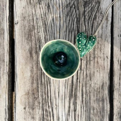 Urocza podstawka dekoracyjna pod kubek w kształcie liścia, tym razem w kolorze butelkowej zieleni. Może również posłużyć jako podstawka pod gorący garnek lub mydelniczkę, co wolisz ;-)