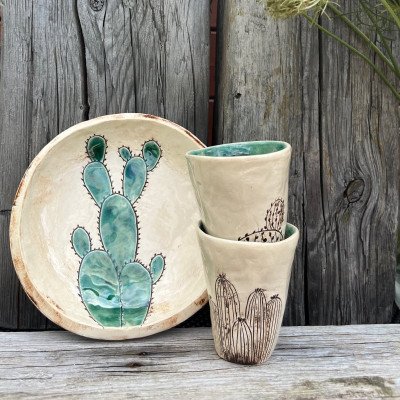 Dwie miseczki o nieregularnym kształcie, z ręcznie rysowanym motywem. I to właśnie jest kwintesencja hendmejdu, drugiego takiego zestawu nie znajdziesz.