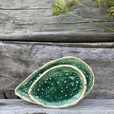Zestaw dwóch ślicznych talerzyków w kształcie kaktusa. Idealne na jedno ciastko lub przekąskę.