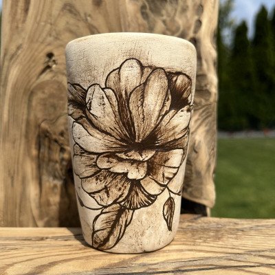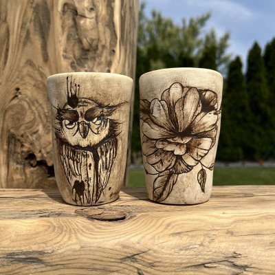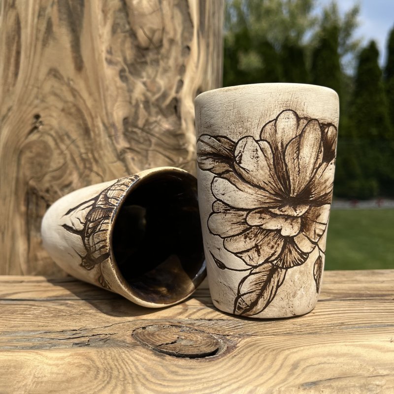 Uwielbiam spersonalizowane kubeczki! Są na prawdę jedyne w swoim rodzaju i niejednokrotnie są wizytówką przyszłego właściciela. Tutaj akurat właścicielki, która posiada podobny tatuaż na swoim ciele. Ręcznie rysowany, a raczej wydrapany nożykiem wzór, następnie pokryty angobą, daje niesamowity efekt podobny do rysunku ołówkiem. Ja jestem zachwycona końcowym efektem! :-) nooo kocham!