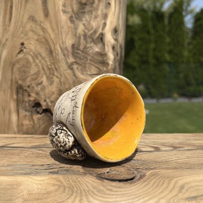 Uroczy zestaw prezentowy dla miłośników rękodzieła. Podstawka ceramiczna z motywem koników, poszkliwiona błyszczącym przezroczystym szkliwem. Mały pojemniczek możesz wykorzystać do przechowywania pierścionków, a podstawka świetnie się sprawdza pod kadzidełka.