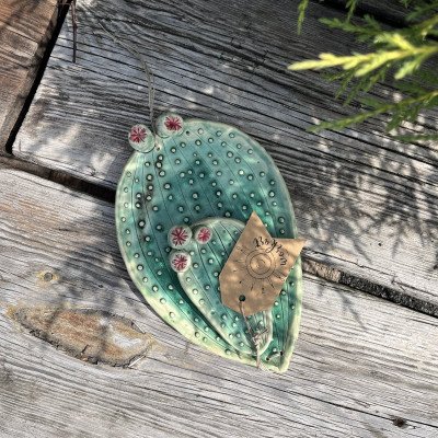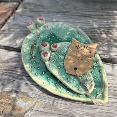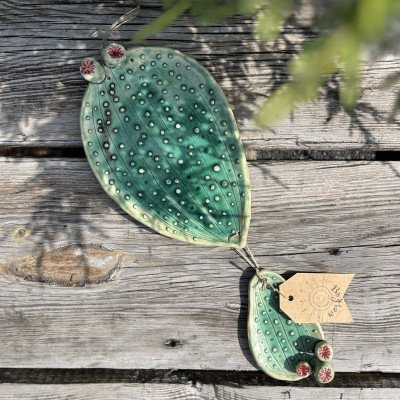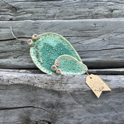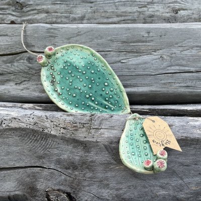 Śliczna dekoracja na wzór kaktusa. Możesz powiesić ją na ścianie lub położyć na stole jako dwa talerzyki lub umieścić na meblościance jako dekorację, Twój wybór :-) Połączone naturalnymi nićmi lnianymi.