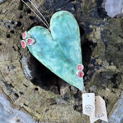 Śliczna, bardzo oryginalna, dekoracja na masywnym drewnianym klocku. Domki i grzybek zostały wykonane ręcznie z gliny, a następnie przyklejone do drewna.