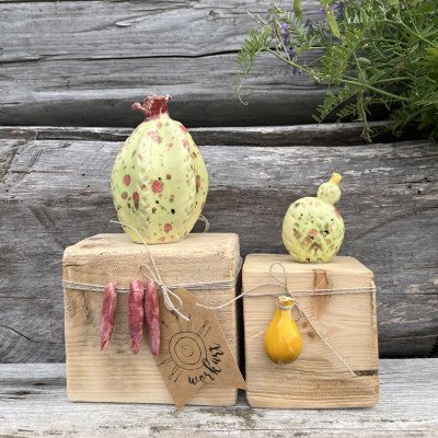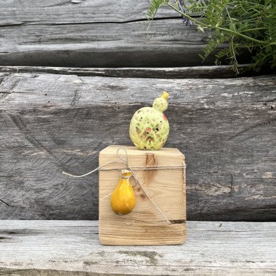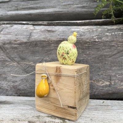 Wymiary drewnianego klocka: 7,5/7,5/7,5 cm wysokość całkowita razem z kaktusem 14 cm