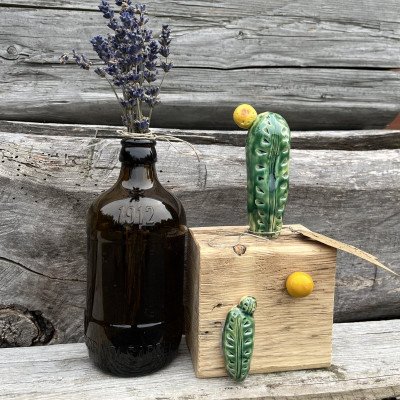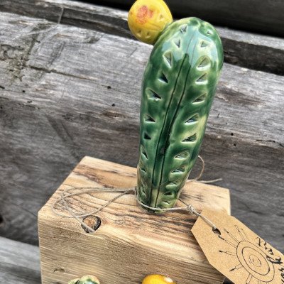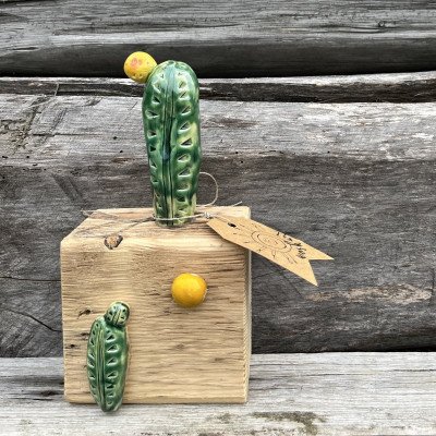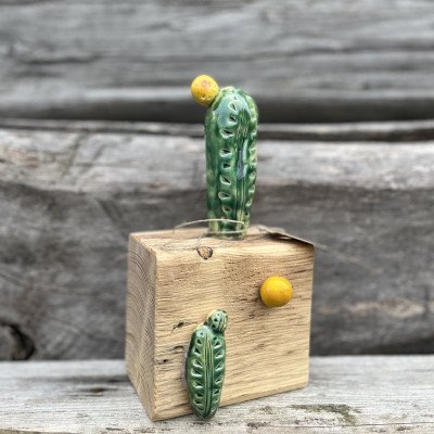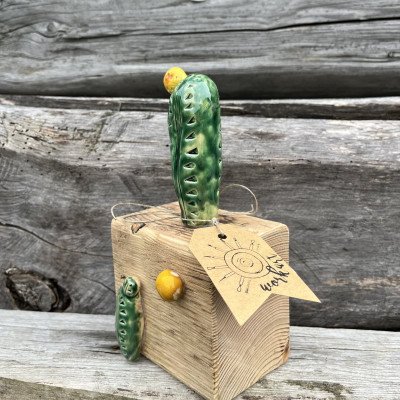 Wymiary drewnianego klocka: 10/7/9 cm wysokość całkowita razem z kaktusem 20 cm