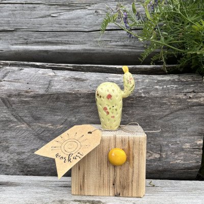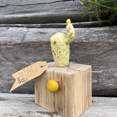 Wymiary drewnianego klocka: 9/7/7 cm wysokość całkowita razem z kaktusem 15 cm