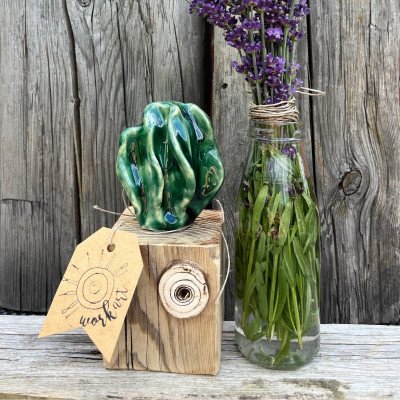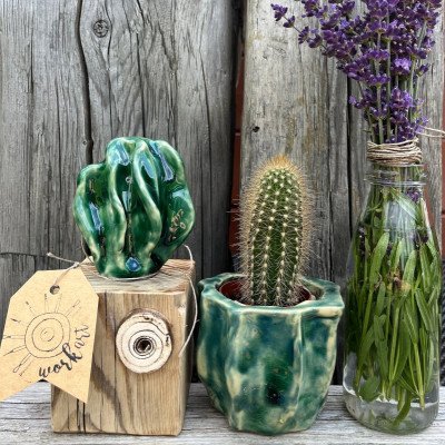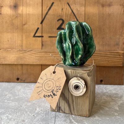 Wymiary drewnianego klocka: 7,5/7/7,5 cm wysokość całkowita razem z kaktusem 16 cm