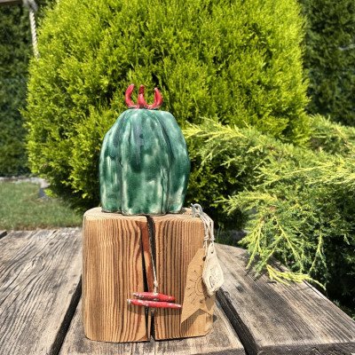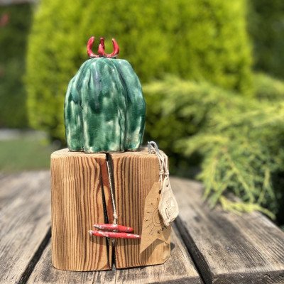 Wymiary drewnianego klocka: 14/13/12 cm wysokość całkowita razem z kaktusem 28 cm