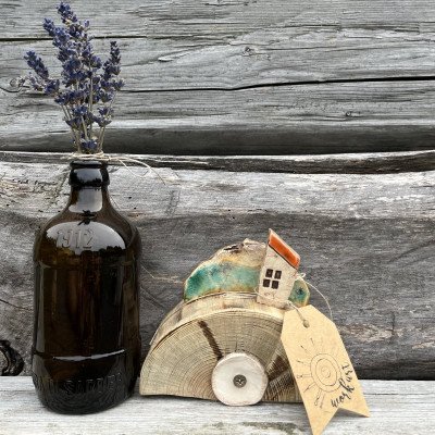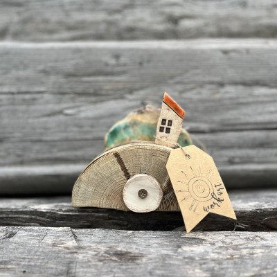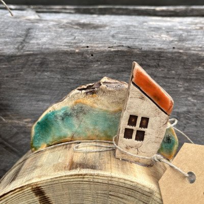 Oryginalna dekoracja na drewienku; domek w górach :-)
