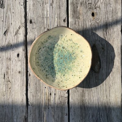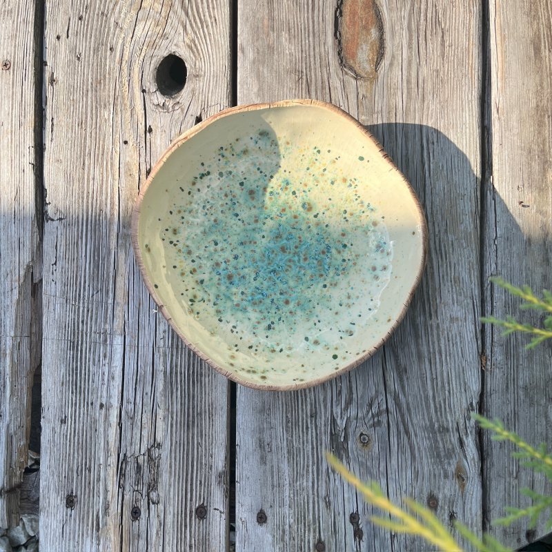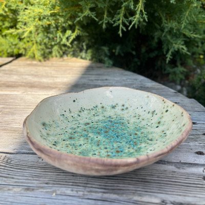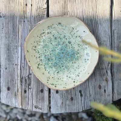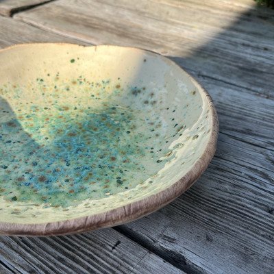 Zestaw 6 talerzyków deserowych w pięknym fioletowym kolorze z czarnymi kropeczkami, każdy talerzyk jest inny, jedyny w swoim rodzaju. Zjeść deser z takiego talerzyka to podwójna przyjemność :-)
