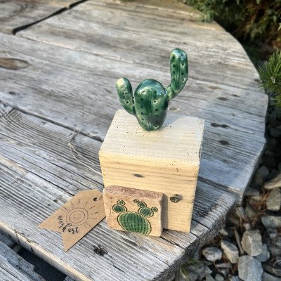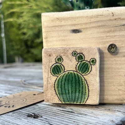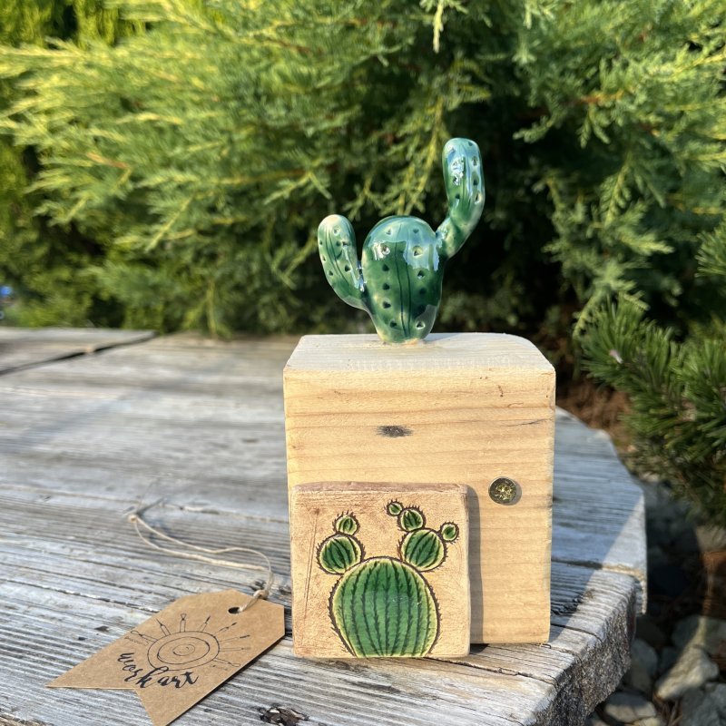 Kolejny z moich kultowych kaktusów na drewienku, nie wiem który to już w kolekcji? Wiem jedno! Jak wszystkie inne, jest unikatowy i jedyny w swoim rodzaju. Tym razem w towarzystwie kaktusa na kawałku gliny, który pierwotnie miał być magnesem na lodówkę, ale ostatecznie zmieniłam jego funkcję, uznałam, że będzie świetnie pasował do tego drewnianego klocka.