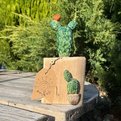 Kolejny z moich kultowych kaktusów na drewienku, nie wiem który to już w kolekcji, wiem jedno, jak wszystkie inne jest unikatowy i jedyny w swoim rodzaju. Tym razem w towarzystwie małego kaktusa, który pierwotnie miał być magnesem na lodówkę, ale ostatecznie zmieniłam jego funkcję, uznałam, że będzie świetnie pasował do tego drewnianego klocka i dużego kaktusa.