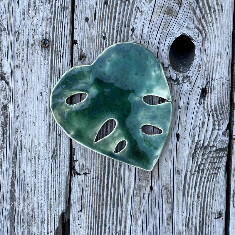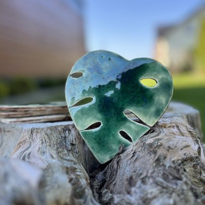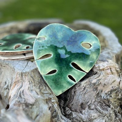 Urocza podstawka dekoracyjna pod kubek w kształcie liścia, tym razem w kolorze butelkowej zieleni. Może również posłużyć jako podstawka pod gorący garnek lub mydelniczkę, co wolisz ;-)