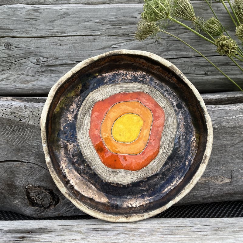 Dekoracyjna, masywna patera w energetycznych kolorach. Z pewnością wpasuje się do ciemnych industrialnych wnętrz, w których będzie pewnego rodzaju dominantą, ale także w jasnych i nowoczesnych. Świetna ozdoba stołu podczas weekendowej domówki, na której spokojnie możesz ułożyć swoje ulubione przekąski.