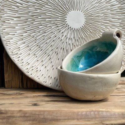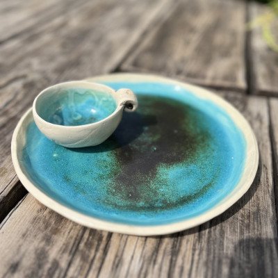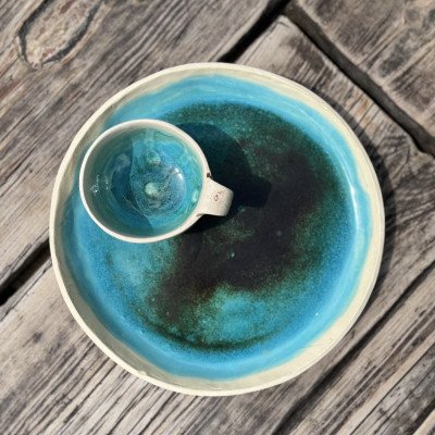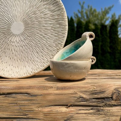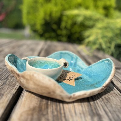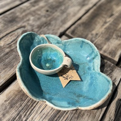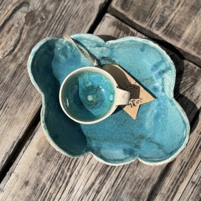 Idealnie pasuje do patery "turkusowa chmurka", możesz je również zestawić z innym turkusowym lub białym talerzem.