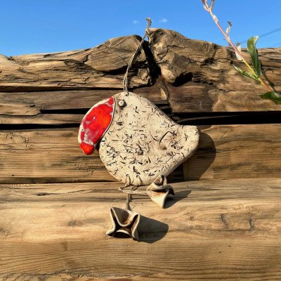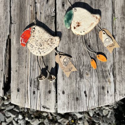 Piękna dekoracja, połączenie naturalnego drewna z ceramiką. Można ją postawić lub powiesić na ścianie.