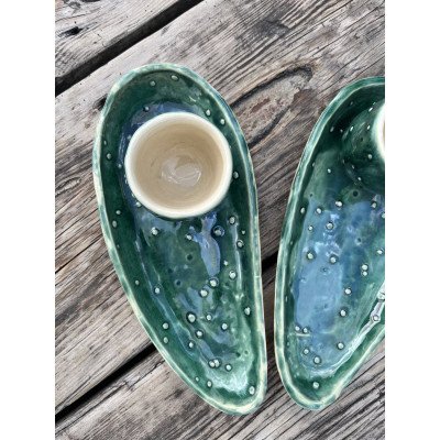 Ręcznie lepiony zestaw kawowy z motywem kaktusa.